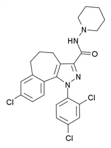 - ↑ Stoit AR, Lange JH, Hartog AP, Ronken E, Tipker K, Stuivenberg HH, et al. (August 2002). "Design, synthesis and biological activity of rigid cannabinoid CB1 receptor antagonists". Chemical & Pharmaceutical Bulletin. 50 (8): 1109–13. doi:10.1248/cpb.50.1109. PMID 12192147.