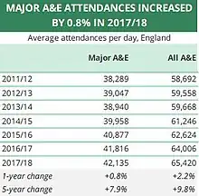 - ↑ "What's going on in A&E? The key questions answered". King's Fund. 6 March 2017. Retrieved 19 March 2017.