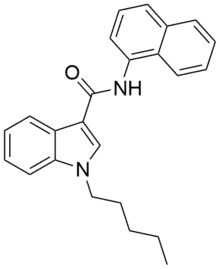 - ↑ Sasaki C, Saito T, Shinozuka T, Irie W, Murakami C, Maeda K, et al. (January 2015). "A case of death caused by abuse of a synthetic cannabinoid N -1-naphthalenyl-1-pentyl-1H -indole-3-carboxamide". Forensic Toxicology. 33 (1): 165–169. doi:10.1007/s11419-014-0246-5. S2CID 13524298.