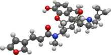 Nalfurafine (INN, USAN)[3] (brand name Remitch; former developmental code names TRK-820, AC-820, MT-9938) is an antipruritic (anti-itch drug) that is marketed in Japan for the treatment of uremic pruritus in individuals with chronic kidney disease undergoing hemodialysis.[2][4] It activates the κ-opioid receptor (KOR)[5] and is potent, selective, and centrally active.[6] It was the first selective KOR agonist approved for clinical use.[7][8] It has also been dubiously referred to as the "first non-narcotic opioid drug" in history.[8]
