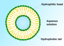 Liposomes are spherical vesicles composed of synthetic or natural phospholipids that self-assemble in aqueous solution in sizes ranging from tens of nanometers to micrometers.[16] The resulting vesicle, which has an aqueous core surrounded by a hydrophobic membrane, can be loaded with a wide variety of hydrophobic or hydrophilic molecules for therapeutic purposes.