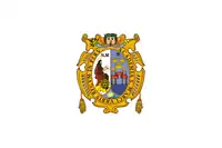 Flag of the University of San Marcos; the emblem represents the institution, and the white background represents the variety of academic colors of each faculty.