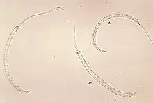 Dracunculiasis is also known as Guinea-worm disease. In 2019, 53 cases were reported across four countries,[44] a substantial decrease from 3,500,000 cases in 1986.[45] It is not fatal, but can cause months of inactivity.[46] It is caused by drinking water contaminated by water fleas infected with guinea-worm larvae.[46] Approximately one year after infection, a painful blister forms and one or more worms emerge. Worms can be up to 1 metre long.[46]