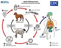 Surgery and drugs can be used to treat echinococcosis.[49] It can be prevented by deworming dogs, sanitation, proper disposal of animal feces, health education, and livestock vaccination.[50] Cystic echinococcosis is found in the eastern portion of the Mediterranean region, northern Africa, southern and eastern Europe, the southern portion of South America, and Central Asia. Alveolar echinococcosis is found in western and northern China, Russia, Europe, and northern North America.[48] It can be diagnosed through imaging techniques and serological tests.[50]