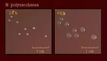 | An image of the culture of Neisseria polysaccharea at 24 and then 48 hours from the Centers for Disease Control | |