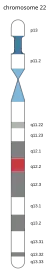 NF2 is caused by inactivating mutations in the NF2 gene located at 22q12.2 of chromosome 22, type of mutations vary and include protein-truncating alterations (frameshift deletions/insertions and nonsense mutations), splice-site mutations, missense mutations and others. Deletions, too, in the NH2-terminal domain of merlin proteins have been associated with early tumor onset and poor prognosis in people with NF2.[5] Protein truncating mutations correlate with more severe phenotype.[6] There is a broad clinical spectrum known, but all people with the condition who have been checked have been found to have some mutation of the same gene on chromosome 22. Through statistics, it is suspected that one-half of cases are inherited, and one-half are the result of new, de novo mutations.
