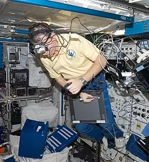 - ↑ Mader TM, Gibson R, Pass AF, et al. (2001). "Optic disc edema, globe flattening, choroidal folds, and hyperopic shifts observed in astronauts after long-duration space slight". Ophthalmology. 118 (10): 2058–2069. doi:10.1016/j.ophtha.2011.06.021. PMID 21849212.