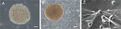 - ↑ Jensen, Josephine B.; Malin Parmar (2006). "Strengths and Limitations of the Neurosphere Culture System". Molecular Neurobiology. 34 (3): 153–162. doi:10.1385/mn:34:3:153. PMID 17308349. S2CID 18603451.