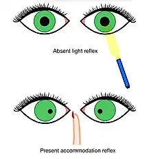 - ↑ Thompson, H. Stanley; Kardon, Randy H. (June 2006). "The Argyll Robertson pupil". Journal of Neuro-Ophthalmology. 26 (2): 134–138. doi:10.1097/01.wno.0000222971.09745.91. ISSN 1070-8022. PMID 16845316.