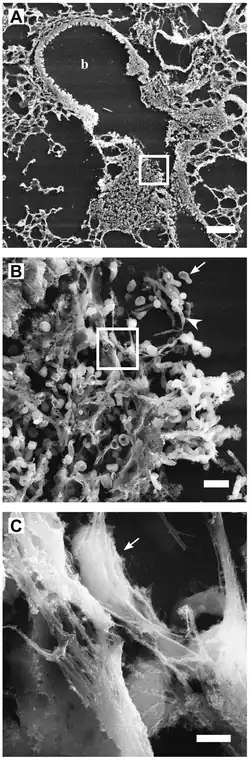 - ↑ Caudrillier, Axelle; Kessenbrock, Kai; Gilliss, Brian; Nguyen, John; Marques, Marisa; Monestier, Marc; Toy, Pearl; Werb, Zena; Looney, Mark (2 Jul 2012). "Platelets induce neutrophil extracellular traps in transfusion-related acute lung injury". The Journal of Clinical Investigation. 122 (7): 2661–71. doi:10.1172/JCI61303. PMC 3386815. PMID 22684106.