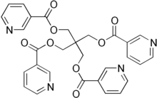 Niceritrol is a niacin derivative used as a hypolipidemic agent. It is an ester of pentaerythritol and nicotinic acid, has general properties similar to those of nicotinic acid (Nicotinamide), to which it is slowly hydrolysed. Niceritrol has been used as a lipid regulating drug in hyperlipidaemias and as a vasodilator in the treatment of peripheral vascular disease.[1][2]