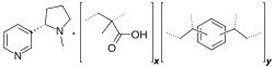 Nicotine polacrilex is nicotine bound to an ion-exchange resin (polymethacrylic acid, such as Amberlite IRP64, Purolite C115HMR or Doshion P551).[4] It is added to gum and hard lozenges used for nicotine replacement therapy in smoking cessation, such as in the Nicorette range of products. The use of the polymer as a delivery system maximizes the amount of nicotine released and absorbed by the oral mucosa. 80 to 90 percent of the nicotine released from the gum is absorbed by the mouth. Side effects of the gum include bad taste, nausea, dyspepsia, and stomatitis.