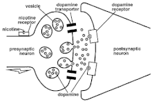 The aim of nicotine vaccines is to prevent smoking relapse. Past studies discovered that the region ventral tegmental area (VTA) in which the dopaminergic neurons are located, is where nicotine binds to and activates its nAChR receptor, resulting in the release of dopamine.[7] Aside from dopamine release, there are additional neurotransmitters released, which include norepinephrine, acetylcholine, serotonin, γ-aminobutyric acid (GABA), glutamate, and endorphins.[8]