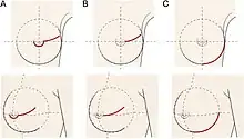 A vertical radial incision extends from the bottom of the areola border to the inframammary fold.[6] This incision is preferable by plastic surgeons as it allows upward positioning of the nipple for ptosis correction.[23]
