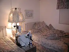 ![]() NxStage System One cycler, being used for hemodialysis with bags of dialysate | |