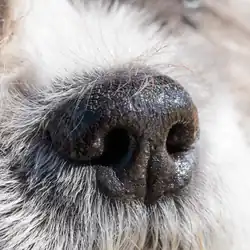 The wet nose of dogs is useful for the perception of direction. The sensitive cold receptors in the skin detect the place where the nose is cooled the most and this is the direction a particular smell that the animal just picked up comes from.[8]