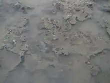 Nostoc, also known as star jelly, troll's butter, spit of moon, fallen star, witch's butter (not to be confused with the fungi commonly known as witches' butter), and witch's jelly, is the most common genus of cyanobacteria found in a variety of both aquatic and terrestrial environments that may form colonies composed of filaments of moniliform cells in a gelatinous sheath of polysaccharides.[1] It may also grow symbiotically within the tissues of plants, providing nitrogen to its host through the action of terminally differentiated cells known as heterocysts. Nostoc is a genus that includes many species that are diverse in morphology, habitat distribution, and ecological function.[2] Nostoc can be found in soil, on moist rocks, at the bottom of lakes and springs, and rarely in marine habitats. It may also be found in terrestrial temperate, desert, tropical, or polar environments.[3]