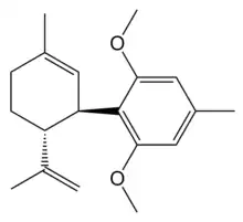 O-1918 is a synthetic compound related to cannabidiol, which is an antagonist at two former orphan receptors GPR18 and GPR55, that appear to be related to the cannabinoid receptors. O-1918 is used in the study of these receptors, which have been found to be targets for a number of endogenous and synthetic cannabinoid compounds, and are thought to be responsible for most of the non-CB1, non-CB2 mediated effects that have become evident in the course of cannabinoid research.[1][2][3][4][5]
