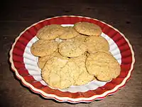 In Scotland, oatmeal is created by grinding oats into a coarse powder.[21] It may be ground fine, medium, or coarse, or rolled, or the groats may be chopped in two or three pieces to make what is described as pinhead oatmeal.[22] Ground oatmeal, rolled oats, and pinhead oatmeal are all used throughout Britain; one Scots manufacturer describes varieties as "Scottish Porridge Oats" (rolled), "Scottish Oatmeal" (medium ground), and "Pinhead Oatmeal".[23] The main uses are: