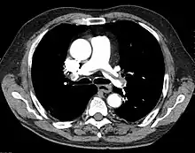 - ↑ Sista AK, Kuo WT, Schiebler M, Madoff DC (July 2017). "Stratification, Imaging, and Management of Acute Massive and Submassive Pulmonary Embolism". Radiology. 284 (1): 5–24. doi:10.1148/radiol.2017151978. PMID 28628412.