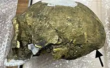 An occipital bun, also called an occipital spur, occipital knob, chignon hook or inion hook, is a prominent bulge or projection of the occipital bone at the back of the skull. It is important in scientific descriptions of classic Neanderthal crania.[1] It is found among archaic Homo species (including Neanderthals), as well as Upper Pleistocene Homo sapiens and present-day human populations.[2]