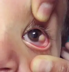 - Ocular abnormalities: epibulbar dermoids, microphthalmia, anophthalmia, eye asymmetry or dysmorphy.