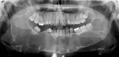 Early odontogenic keratocysts usually do not display symptoms. Typically, clinical signs and symptoms present with bony expansion, or infection. However, bony expansion is uncommon as odontogenic keratocysts grow due to increased epithelial turnover rather than osmotic pressure. When symptoms are present they usually take the form of pain, swelling and discharge due to secondary infection. Odontogenic keratocysts are usually noted as incidental radiographic findings. Radiographically they can be seen as unilocular or multilocular radiolucencies. They can be mistaken for other cysts such as residual cysts or a dentigerous cyst if they occur over an unerupted tooth.[8]