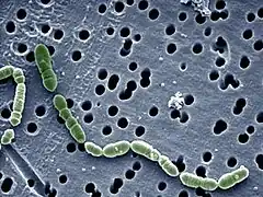 - ↑ Zheng J, Wittouck S, Salvetti E, Franz CMAP, Harris HMB, Mattarelli P, O'Toole PW, Pot B, Vandamme P, Walter J, Watanabe K, Wuyts S, Felis GE, Gänzle MG, Lebeer S. (2020). "A taxonomic note on the genus Lactobacillus: Description of 23 novel genera, emended description of the genus Lactobacillus Beijerinck 1901, and union of Lactobacillaceae and Leuconostocaceae". Int J Syst Evol Microbiol. 70 (4): 2782–2858. doi:10.1099/ijsem.0.004107. hdl:10067/1738330151162165141. PMID 32293557.
