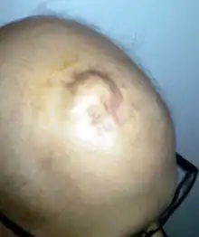 ![]() Schematic of an already-implanted Ommaya reservoir. | |