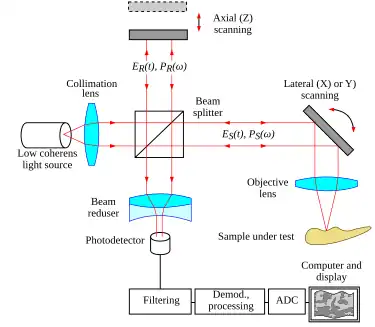 - ↑ Leitgeb R, Hitzenberger C, Fercher A (April 2003). "Performance of fourier domain vs. time domain optical coherence tomography". Optics Express. 11 (8): 889–894. Bibcode:2003OExpr..11..889L. doi:10.1364/oe.11.000889. PMID 19461802.
