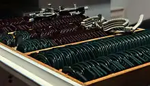 Technically identified by the generic term manual lensometer, opticians may often refer to this piece of equipment as a lensometer, focimeter, or vertometer. The modern lensometer was invented in 1922 by Edgar Derry Tillyer of American Optical to determine "whether lenses have the refraction and power prescribed."[9] Proper use of the lensometer by a dispensing optician or a lab optician includes verifying back or front vertex power, orientating uncut lenses for finishing and glazing, and confirming the mounting of lenses into the frame.[10] Manual lensometers can also be outfitted with an attachment to read the back vertex power of a contact lens for modification and verification purposes.[11]