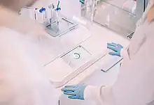 Organ printing technology can also be combined with microfluidic technology to develop organs-on-chips.[29] These organs-on-chips have the potential to be used for disease models, aiding in drug discovery, and performing high-throughput assays.[29] Organ-on-chips work by providing a 3D model that imitates the natural extracellular matrix, allowing them to display realistic responses to drugs.[29] Thus far, research has been focused on developing liver-on-a-chip and heart-on-a-chip, but there exists the potential to develop an entire body-on-a-chip model.[29]