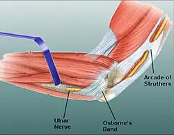 - ↑ Wali, AR; Gabel, B; Mitwalli, M; Tubbs, RS; Brown, JM (1 May 2017). "Clarification of Eponymous Anatomical Terminology: Structures Named After Dr Geoffrey V. Osborne That Compress the Ulnar Nerve at the Elbow". Hand. 13 (3): 355–359. doi:10.1177/1558944717708030. PMC 5987985. PMID 28503939.