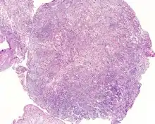 | An intermediate magnification of a H&E stained biopsy from an otic polyp. | |