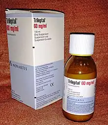 - 1 2 3 4 5 6 7 8 9 10 11 12 13 14 15 16 17 18 19 20 21 22 23 24 25 26 27 28 29 30 31 "Trileptal- oxcarbazepine tablet, film coated Trileptal- oxcarbazepine suspension". DailyMed. Retrieved 9 November 2020.