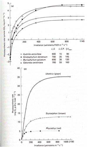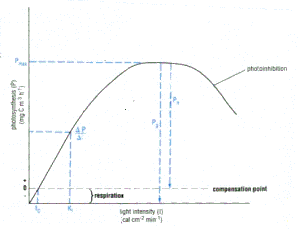 - KI = half-saturation constant; the light intensity at which the photosynthetic rate proceeds at ½ Pmax