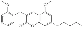 - ↑ Rempel V, Volz N, Hinz S, Karcz T, Meliciani I, Nieger M, et al. (September 2012). "7-Alkyl-3-benzylcoumarins: a versatile scaffold for the development of potent and selective cannabinoid receptor agonists and antagonists". Journal of Medicinal Chemistry. 55 (18): 7967–77. doi:10.1021/jm3008213. PMID 22916707.