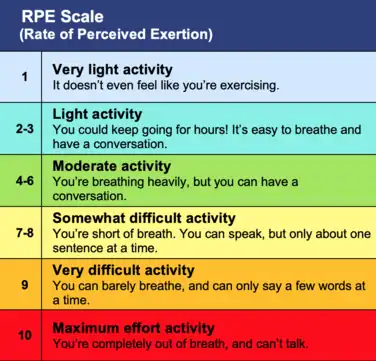 - ↑ "Rated Perceived Exertion (RPE) Scale". November 1, 2023. Retrieved February 25, 2025 – via Clevland Clinic.
