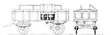The Rochdale system was first used in 1869. It used a wooden tub, or pail (sometimes half of a petroleum barrel), which was placed under the closet seat. The pails were often circular (to aid cleaning),[10] and were designed to be easily handled and of a size that encouraged regular collections.[11] The top of the pail carried a cast iron rim about 3 inches deep to receive a tight-fitting inner lid. The pails were collected on a weekly basis during the day. Each pail was secured by its lid and loaded onto a sealed 24-bay wagon to be taken to a depot where they were emptied, cleaned and returned. While the pail was removed from the closet, a replacement was installed in its place. In 1874, Rochdale Corporation employed five such wagons in full-time service, collecting from 3,354 privies spread across the town. By contrast, with a much larger population, Manchester Corporation employed 73 wagons.[12] By 1875, 4,741 pails were in use, and in 1876 the number was 5,566. A separate cart accompanied the wagon to collect other household refuse which was collected from a separate chamber in the pail closet.[13][14]