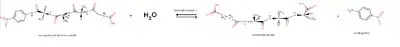 The hydrolysis that elastases bring about occur in several steps, starting with the formation of a complex between elastase and its substrate, with the carbonyl carbon positioned near the nucleophilic serine, followed by a nucleophillic attack that forms an acyl-enzyme intermediate (a pair of electrons from the double bond of the carbonyl oxygen moves to the oxygen) while the first product is released. The intermediate is then hydrolyzed in a deacylation step, regenerating the active enzyme and resulting in the release of the second product ( the electron-deficient carbonyl carbon re-forms the double bond with the oxygen and the C-terminus of the peptide is released. It preferentially cleaves peptide bonds at the carbonyl end of amino acid residues with small hydrophobic side chains such as glycine, valine, leucine, isoleucine and alanine. The wide specificity of elastases for non-aromatic uncharged side chains can explain its ability to break down native elastin.[11]