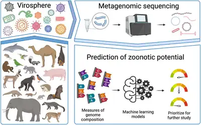 In a 2012 study it is claimed that "new mathematical modelling, diagnostic, communications, and informatics technologies can identify and report hitherto unknown microbes in other species, and thus new risk assessment approaches are needed to identify microbes most likely to cause human disease". The study investigates challenges in moving the global pandemic strategy from response to pre-emption.[55] Some scientists are screening blood samples from wildlife for new viruses.[56] The international Global Virome Project (GVP) aims to identify the causes of fatal new diseases before emergence in human hosts by genetically characterizing viruses found in wild animals.[57] The project aims to enlist an international network of scientists to collect hundreds of thousands of viruses, map their genomes, characterize and risk-stratify them to identify which ones to pay attention to. However, some infectious disease experts have criticized the project as too broad and expensive due to limited global scientific and financial resources and because only a small percentage of the world's zoonotic viruses may cross into humans and pose a threat. They argue for prioritizing rapidly detecting diseases when they cross into humans and an improving the understanding of their mechanisms.[58] A successful prevention of a pandemic from specific viruses may also require ensuring that it does not re-emerge – for instance by sustaining itself in domestic animals.[59]