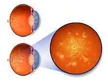 | Complications | Vitreous hemorrhage, Retinal detachment, Glaucoma, Blindness |