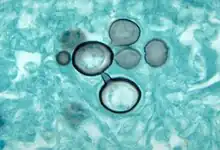 - 1 2 3 4 5 Proia, Laurie (2020). "28. The dimorphic mycoses". In Spec, Andrej; Escota, Gerome V.; Chrisler, Courtney; Davies, Bethany (eds.). Comprehensive Review of Infectious Diseases. Elsevier. pp. 419–420. ISBN 978-0-323-56866-1.
