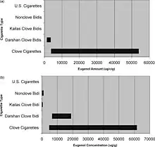 30. Stanfill, S. B; Calafat, A. M; Brown, C. R; Polzin, G. M; Chiang, J. M; Watson, C. H; Ashley, D. L (2003-02-01). "Concentrations of nine alkenylbenzenes, coumarin, piperonal and pulegone in Indian bidi cigarette tobacco". Food and Chemical Toxicology. 41 (2): 303–317. doi:10.1016/S0278-6915(02)00230-2. ISSN 0278-6915. PMID 12480305.