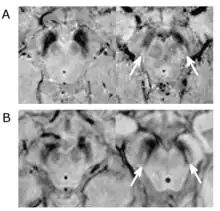 Compared volume of the substantia nigra between a patient with PD and without PD