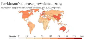 Worldwide prevalence rate of Parkinson's disease as of 2019