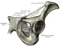 - ↑ Faure JP, Hauet T, Scepi M, Chansigaud JP, Kamina P, Richer JP (2001). "The pectineal ligament: anatomical study and surgical applications". Surg Radiol Anat. 23 (4): 237–42. doi:10.1007/s00276-001-0237-1. PMID 11694967. S2CID 2443894.