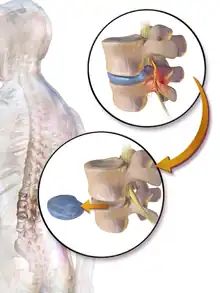 - ↑ Schoenfeld, A. J.; Weiner, B. K. (2010). "Treatment of lumbar disc herniation: Evidence-based practice". International Journal of General Medicine. 3: 209–214. doi:10.2147/ijgm.s12270. PMC 2915533. PMID 20689695.