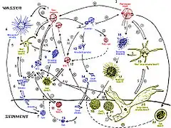 - ↑ Litaker RW, Vandersea MW, Kibler SR, Madden VJ, Noga EJ, Tester PA (2002). "Life cycle of the heterotrophic dinoflagellate Pfiesteria piscicida (Dinophyceae)". Journal of Phycology. 38 (3): 442–463. Bibcode:2002JPcgy..38..442L. doi:10.1046/j.1529-8817.2002.t01-1-01242.x.