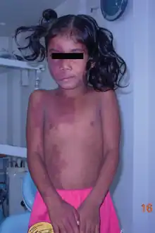 3. 1 2 3 Fernández-Guarino M, Boixeda P, de Las Heras E, Aboin S, García-Millán C, Olasolo PJ (January 2008). "Phakomatosis pigmentovascularis: Clinical findings in 15 patients and review of the literature". Journal of the American Academy of Dermatology. 58 (1): 88–93. doi:10.1016/j.jaad.2007.08.012. PMID 18045734.